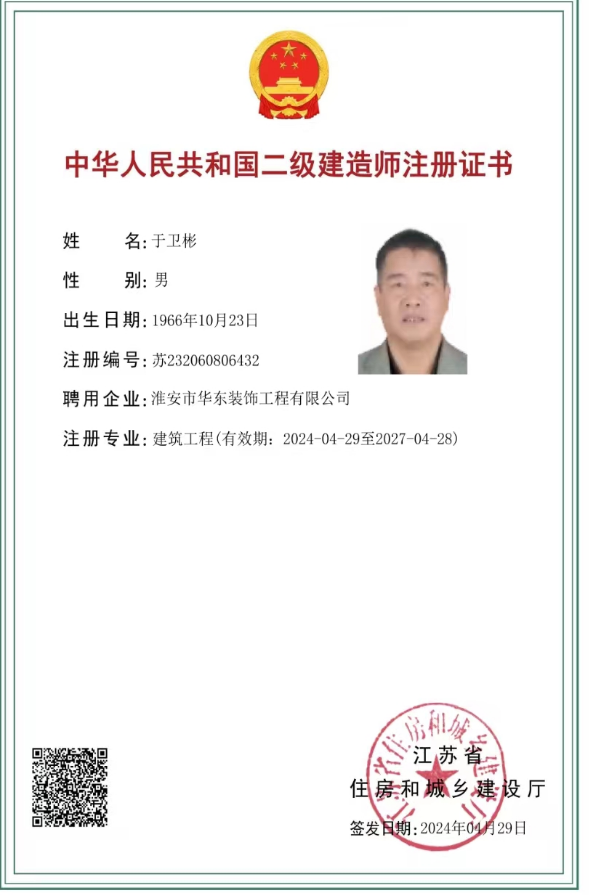 淮安市華東裝飾工程有限公司成立于2005年1月,企業(yè)性質(zhì)為民營(yíng)股份制企業(yè),是一家管理體制,質(zhì)量保證體系嚴(yán)密的專業(yè)裝飾公司,是淮安裝飾業(yè)界優(yōu)秀企業(yè)之一。企業(yè)注冊(cè)資金1010萬(wàn)元,擁有建筑裝飾裝修專業(yè)承包二級(jí)資質(zhì);電子與智能化工程專業(yè)承包二級(jí)資質(zhì);了解更多>>
